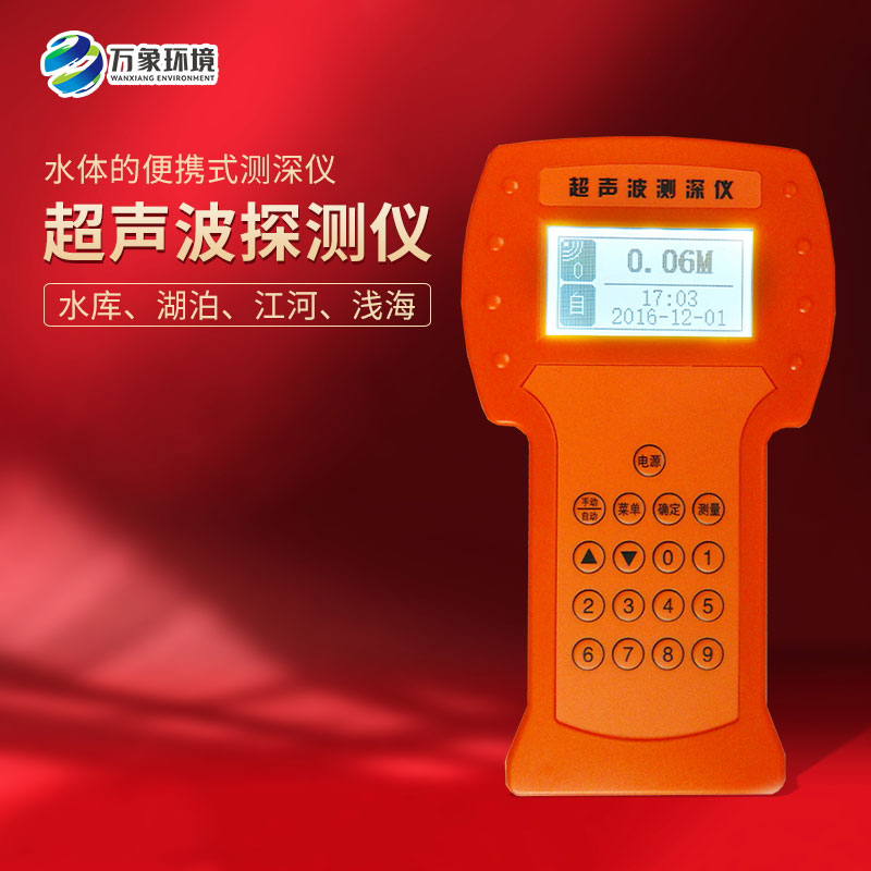 超声波测深仪是测量水库、湖泊、江河、浅海等水体的便携式测深仪,测深时将超声波换能器置于水面或一定位置,利用超声波在水中的固定声速VC和超声波发射到接收的时间T,仪器自动换算出水深H。本品是我司积多年生产经验,吸取了多种同类产品优点,而开发的一款方便适用的手持式超声波测距仪表。超声波收发转换电路采用专用大规模集成电路,元件贴片率99%,并以液晶显示测深结果,保证了产品的长期可靠性,同时将其功耗降到了极低。具有测量精确、耗电省、可靠性高、使用方便、操作简单、测量速度准确、携带方便等优点。仪器可在静水中测深,也可在具有一定速度的水中测深;水流速度可达5m/秒左右,是水文测验、水电厂库区、湖泊、河道勘测和环境水域监测的理想水深测量仪器。